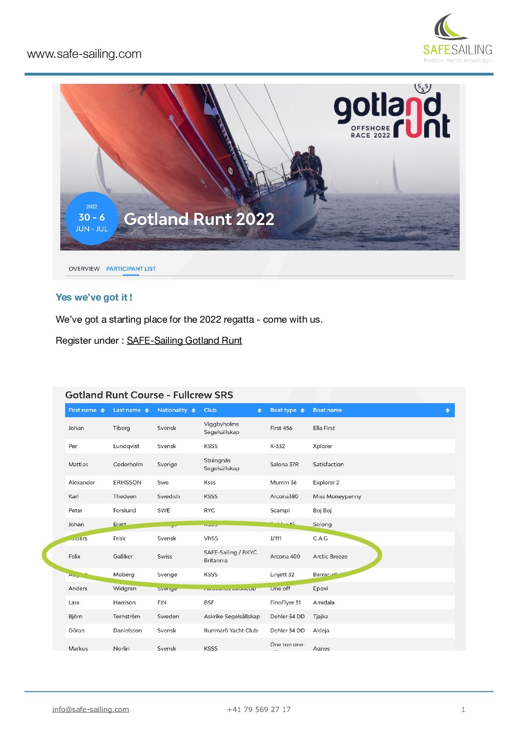 We’ ve got a starting place for the famous « Gotland Runt Race »